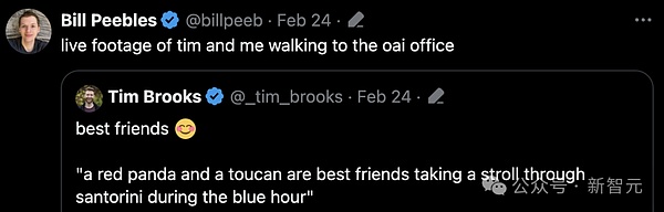 两位Sora作者,Bill Peebles、Tim Brooks纷纷甩出全新图片。(顺便还秀了一把基友情?)