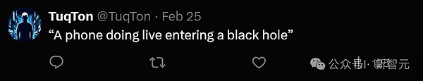 还有人给Sora出了神考题——「一部手机正在直播进入黑洞的过程」。