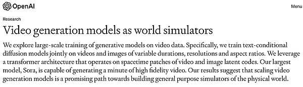 报告地址:https://openai.com/research/video-generation-models-as-world-simulators