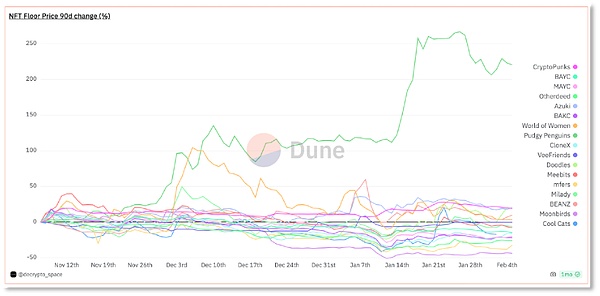 蓝筹NFT项目地板价90天涨幅