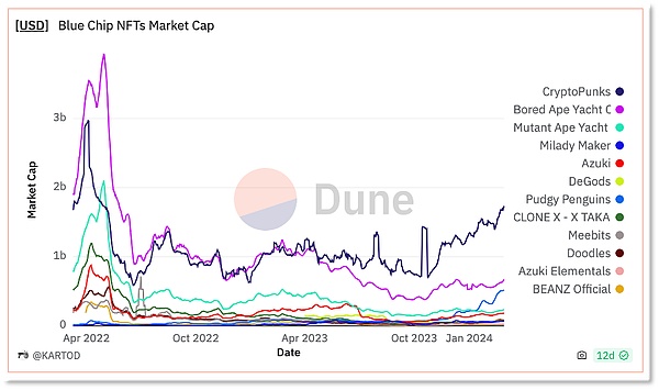蓝筹NFT项目市值变化趋势
