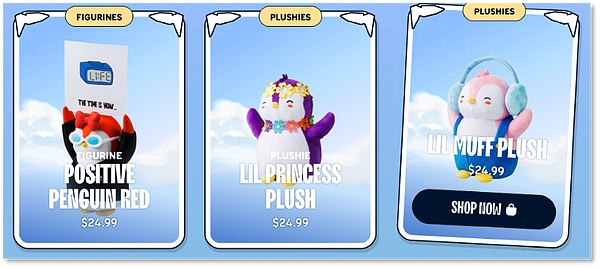 过去一年,品牌建设与IP衍生品是Pudgy Penguins强势崛起的关键策略,通过销售与NFT配套的实体玩具Pudgy Toys,该项目在不到一年的时间里实现了1000万美元的销售额。