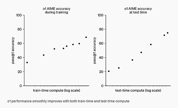 OpenAI 发现,随着更多的强化学习(训练时计算)和更多的思考时间(测试时计算),o1 的性能持续提高。而且扩展这种方法的限制与大模型预训练的限制有很大不同,OpenAI 也还在继续研究。