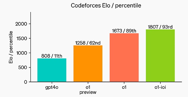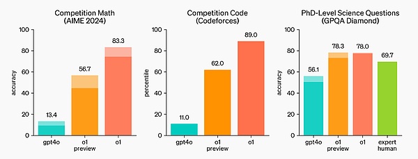 在国际数学奥林匹克(IMO)资格考试中,GPT-4o 仅正确解答了 13% 的问题,而 o1 模型正确解答了 83% 的问题。