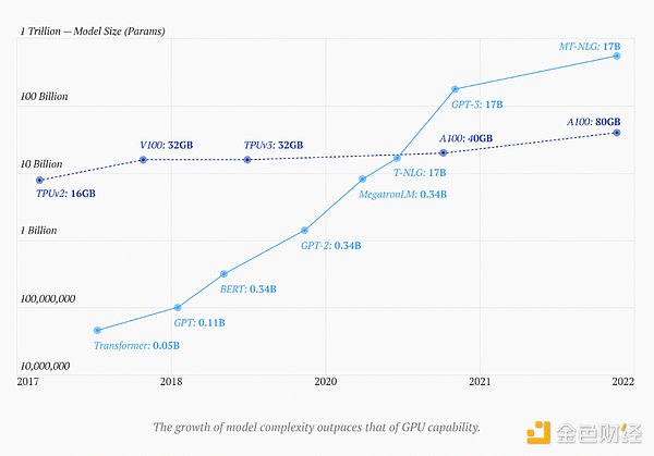 摩尔定律指出,微芯片上的晶体管数量大约每两年翻一番。然而,AI 模型的增长速度已超过了硬件改进的速度,导致计算需求与供给之间的差距不断扩大。这种差距使得硬件和软件的协同设计变得必不可少。