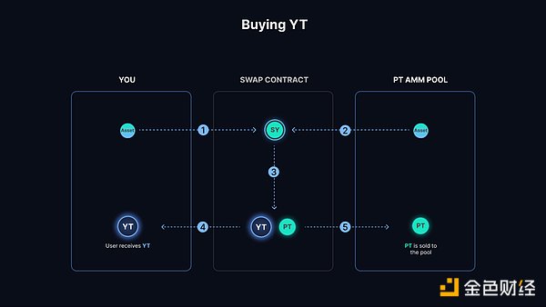 YT 持有者可以获得持有期间的该生息资产的全部收益,对应本金的收益权。如果收益是实时结算,那么持有 YT 可以随时领取已结算的收益,如果收益是到期后结算,用户只能在到期后凭 YT 领取收益,YT 对应的收益被领取完毕后,YT 资产将失效。购买 YT 的行为是一种 long yield 的行为,即认为该生息资产未来的收益率将会上升,获得的总收益将高于目前购买 YT 的价格。YT 为用户提供了一个收益杠杆,不需要购买完整的生息资产,就可以直接购买收益权,但如果收益率大幅下跌,YT 资产面临着亏本的问题,因此相比于 PT 资产,YT 是高风险、高收益的资产。