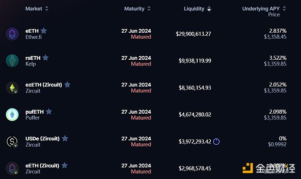 Fixed APY:专门针对 PT 资产,持有 PT 能够获得的固定收益率,这一数值和 Implied APY 的数值是相等的