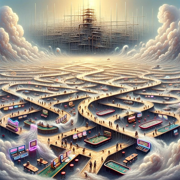 从项目数量来看,加密市场上的数万种加密货币中(算上 meme 将超过数十万种),可能只有上百个项目最终是具有价值的,绝大部分仍以“搞钱”为主。它们像一个个“开放的赌场”,不受时间和空间的限制,任何人都可以参加。这种新式赌场是“开放演化”的,项目方抓住投机者人性中的贪婪,不断通过技术升级来更新赌场玩法,制造出无穷无尽、花样繁多的新式赌局,源源不断地吸引一批又一批投机者投入“筹码”,资源的流入进一步推动了技术和商业的创新,“赌场生态”便在这一次次循环之中开放演化。