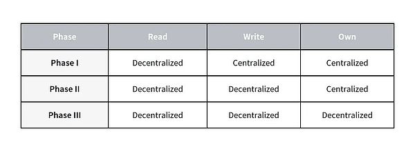 对于这本《协议革命与 DigiLaw 工程》的创作,我想采用加密领域“渐进式去中心化”的方式来完成,邀请大家共同践行一场“Read-Write-Own”的社会实验。这场实验共分三个阶段:第一阶段,邀请几位早期参与者,成立一支由我带领的小团队,中心化地“Write”本书的 1.0 版本,逐篇发出,大家可以无门槛“Read”。第二阶段,创建社区,去中心化的“Write”启动,大家可以直接对 1.0 版本未完成的部分进行撰写或对已完成部分进行迭代,内容是否达到标准将由专家团队决定,通过后你将获得本书2.0版本的链上共创积分。第三阶段,成立 DAO,大家在“Write”的同时,可以借助代币来去中心化地“Own”共创内容的版权以及社区的治理权。最终本书将成为高度去中心化的、由大众迭代 X.0 版本的“公共物品”。