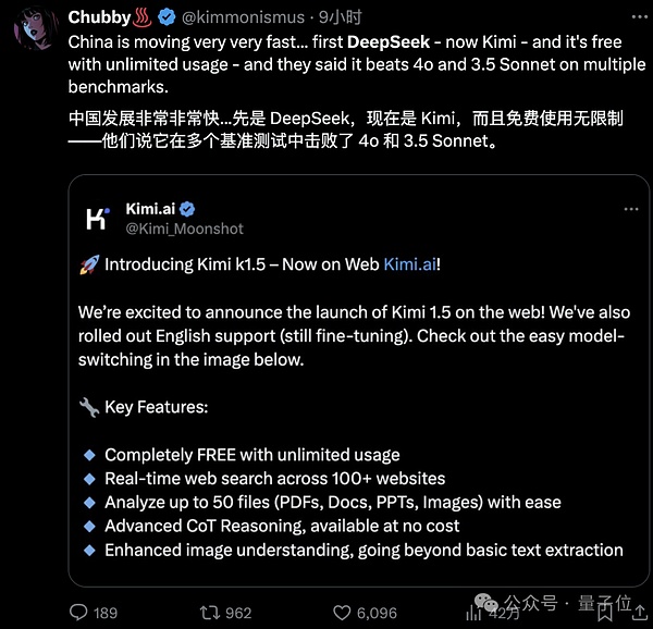 先是DeepSeek,现在是Kimi k1.5……中国(大模型)的发展速度非常快。