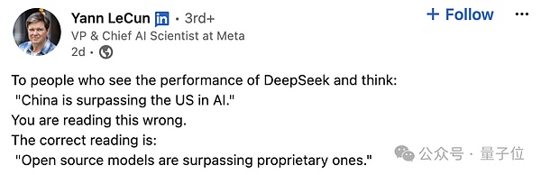 对于DeepSeek引爆的热点话题,LeCun则站出来表示: