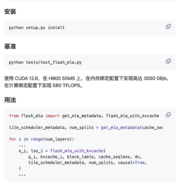 按照官方介绍来说,FlashMLA使用之后,H800可以达到3000GB/s内存,实现580TFLOPS计算性能。