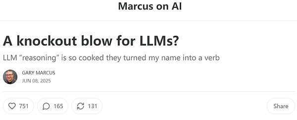 图 | 加里·马库斯(Gary Marcus)发在个人网站上的“周末长文”(来源:https://garymarcus.substack.com/p/a-knockout-blow-for-llms)