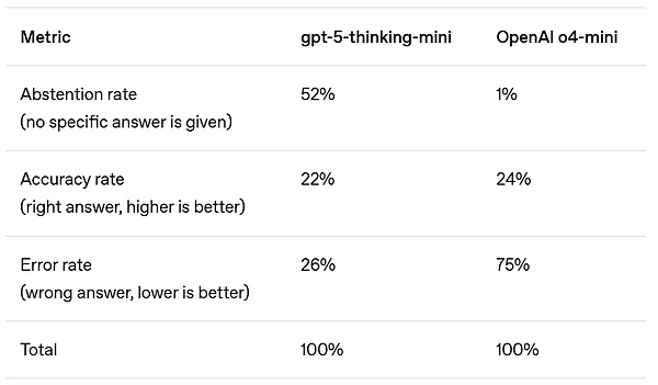 以 GPT5 系统卡中的 SimpleQA 评估为例。