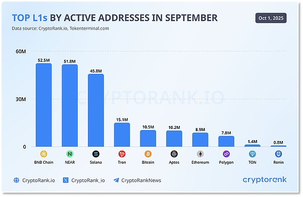 9月,BNBChain活跃地址数超5250万笔跃居主流链第一