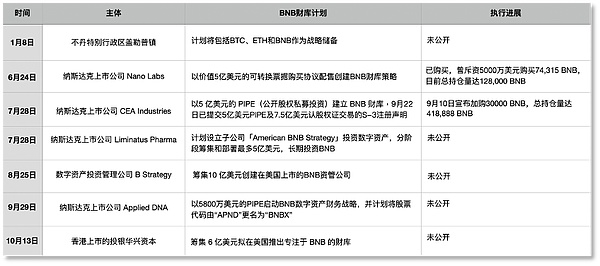 多家机构将BNB纳入储备/财库计划中