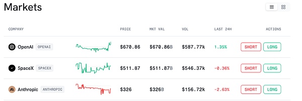 该定义具有极高的想象力。在传统金融市场,Pre-IPO 股权交易监管严格、极度受限的。将 Pre-IPO 与永续合约结合,不涉及真实股权交割,而是进行“估值的合约化博弈”,让原本缺乏流动性的资产“无中生有”,反而拥有更大市场空间。