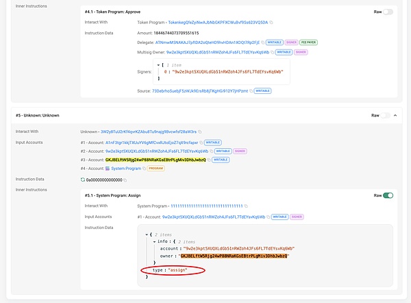 还有一种常见的所有权变更,那就是 Token 账号的所有权,本质上这是一种智能合约内逻辑控制的所有权,不是由 Solana 底层逻辑控制,但它也经常被用于钓鱼攻击,广大用户应警觉这类钓鱼攻击方式。