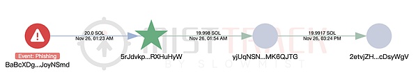 5)20 SOL 转移至 5rJdvkp…,再转移并停留在地址 2etvjZH…。