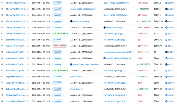 FiywJZ2Z… 将剩余的 215.89 SOL 转移至 Ah5Rs916…,然后兑换为 29,875 USDC。USDC 被分别以 5000、5000、5000、5000、19,875.38 的数值通过 Relay.link 兑换为 DAI 并跨链至 Base 和 Ethereum 地址 0xd2c1c2A…,其中有两笔 5000 USDC 被退回,目前 DAI 均未转出。