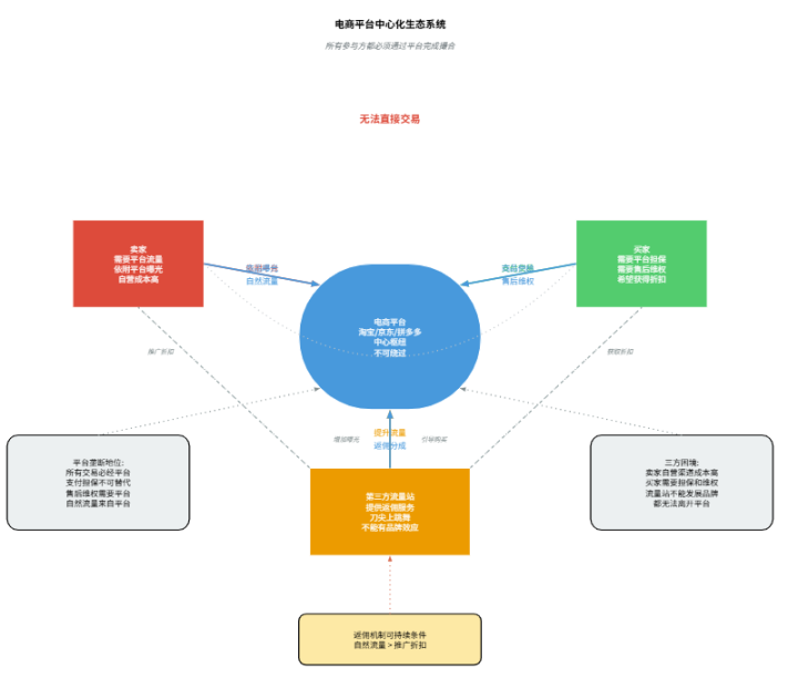 这就是早期电商流量站的困境,他们必须和平台、卖家和买家都维持良好关系,卖家需要第三方流量站提升竞争力,买家希望拿到折扣价。