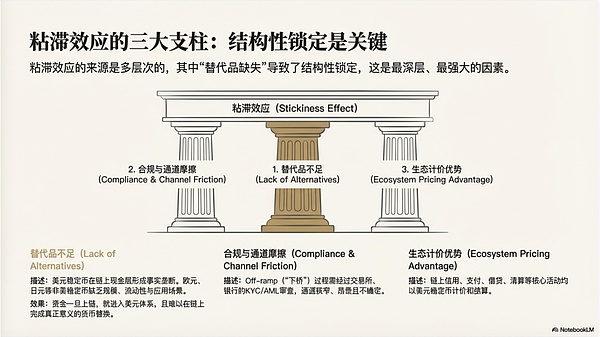 从这个角度看,粘滞的三种来源需要重新排列其轻重缓急。第一是“替代品不足”——也就是非美元稳定币的深度与流动性不足,导致链上缺乏一个可以与美元稳定币平行竞争的现金层。第二才是合规与通道摩擦:稳定币要回到法币世界,通常要经过交易所、银行、支付机构与一系列合规审查;KYC/AML(身份与反洗钱审查)、银行的风险偏好、各地对 VASP(虚拟资产服务商)的监管收紧,都会让 off-ramp(链上资金“下桥”到法币账户)更窄、更贵、更不确定。第三是生态计价优势:链上信用、支付、借贷、做市与清算的默认计价单位高度美元化——当交易、抵押、清算都以美元稳定币为主时,你持有非美元资产不仅要承担汇率风险,还要承担“使用不便”的机会成本。