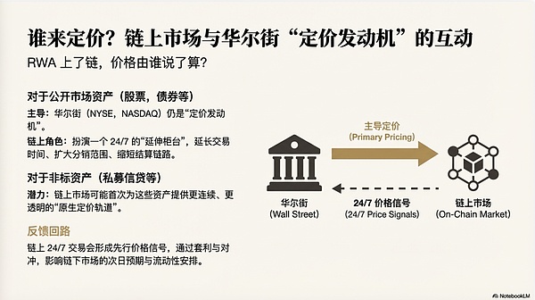 我相信,对那些公开市场资产的映射品(比如美股、指数、可交易债券的链上版本)来说,在可见的未来,华尔街仍然会把价格发现放在主市场手里——NYSE、NASDAQ 以及它们背后的做市与信息体系仍是“定价发动机”,链上更像一个 24/7 的延伸柜台:把交易时间拉长,把分销范围推到全球,把结算链路缩短。真正可能在链上生长出“原生定价”的,反而是非标RWA:私募信贷、应收账款、基金份额这类资产本来就不以连续交易定价为特征,价格更依赖披露、评级、尽调与风控框架;当披露与风险管理足够成熟、做市与清算机制建立起来,链上市场反而可能第一次为这些资产提供更连续、更透明的定价轨道。更微妙的是“反馈回路”:链上 24/7 连续交易会在夜间和事件冲击时先形成价格信号,套利与对冲会把这个信号带回链下,影响第二天的预期与流动性安排——这不意味着链上取代链下,但意味着信息与流动性的传导方式正在改变。再叠加制度先发与基础设施深度,一套“默认选项”效应就会出现:规则越确定、流动性越深、结算越顺滑,美元资产越容易成为全球投资者顺手拿来配置的那一篮子资产,甚至成为新一代投资者资产负债表上的“出厂设置”。