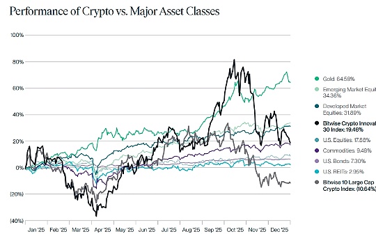 加密资产管理公司 Bitwise 在一份最新报告中指出,2025 年第四季度可能标志着本轮加密熊市的结束。在周三发布的报告中,Bitwise 首席投资官 Matt Hougan 表示,Q4 充满了相互矛盾的信号——尽管加密市场整体表现低迷,但其底层基本面依然强劲。 他指出,类似的情形曾出现在 2023 年第一季度。当时,在 FTX 崩盘之后,加密资产价格开始反弹,比特币价格从 2023 年初约 1.6 万美元 上涨至 2025 年初接近 9.8 万美元。 Hougan 表示:“当时我们正处于 FTX 事件后的复苏阶段,数据表现非常混乱,有的上涨、有的下跌、有的横盘。但在随后的两年里,加密资产价格大幅飙升。”