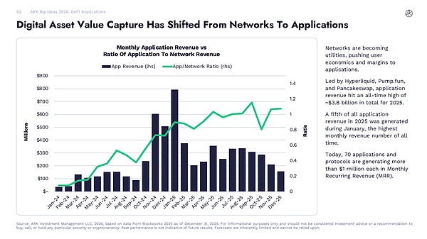 2025 年五分之一的应用程序收入来自 1 月,这是历史上收入最高的月份。如今,有 70 个应用程序和协议的月经常性收入(MRR)超过 100 万美元。