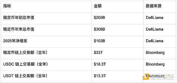 在三大合规框架确立与链上需求爆发的双重驱动下,稳定币市场迎来了显著的价值重估。从宏观数据来看,2025 年稳定币发行量与链上交易活跃度均创下历史新高: