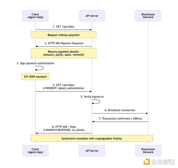 这一问题在 2025 年出现了结构性进展。由 Coinbase、Circle 等机构推动的 x402 协议,首次将稳定币支付以标准化方式嵌入 HTTP 请求与服务调用流程,确立了 AI-Native 支付层的基本形态。通过重新激活 HTTP 402(Payment Required)状态码,x402 使 AI 代理能够像调用 API 一样完成支付与结算,无需额外的账户体系或人工介入,从根本上改变了机器经济中支付必须外置的流程。这一变化也推动 AI 的商业模式从面向人类用户的订阅制,转为面向代理的按调用、按意图付费,代理可以根据任务需要,动态购买数据、算力或服务接口,激活了大量此前难以被有效定价的长尾资源。