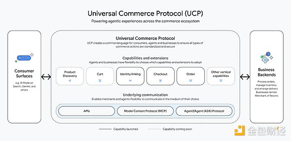 这一趋势正在得到更广泛标准层的呼应。Google 近期提出的 Universal Commerce Protocol(UCP),标志着主流科技体系开始为「代理可理解的商业接口」建立统一规范。UCP 试图在商品发现、交易意图表达与结算流程之间建立开放接口,使 AI 代理能够跨平台完成从决策到交易的完整闭环。由 UCP 负责表达商业语义,x402 承担价值结算职能,两者形成分层协作关系,将为代理与代理之间、代理与商户之间的自动化交易提供更清晰的技术路径。