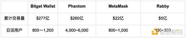 注:数据来源自 Dune,时间截至 2025 年 12 月 31 日;不同钱包在用户规模、交易频率与资产偏好上存在结构性差异,累计交易量与日活跃用户仅反映其在应用内永续合约交易场景中的相对位置
