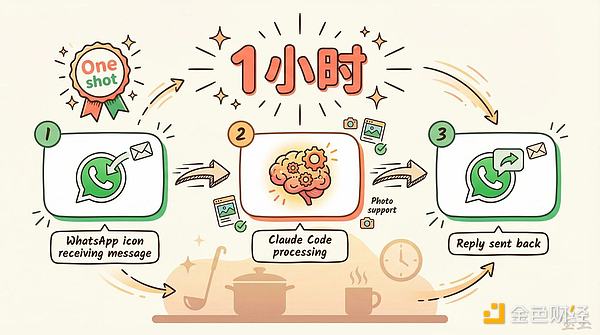他花了 1 小时 拼凑(hack)出了一个基础版本:接收 WhatsApp 消息,调用 Claude Code,把返回结果发回来。一遍过(One shot)。