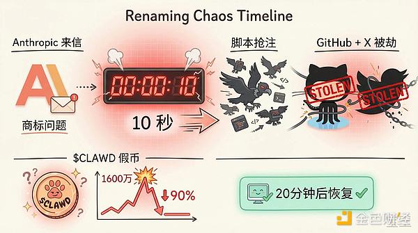 【注】 骗子随后用抢注的账号推广假代币 $CLAWD,一度市值冲到 1600 万美元,Peter 公开否认后暴跌 90%。
