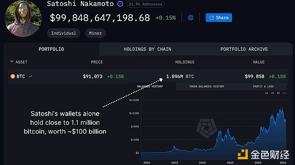 图 1:中本聪的钱包持有近 110 万枚比特币。