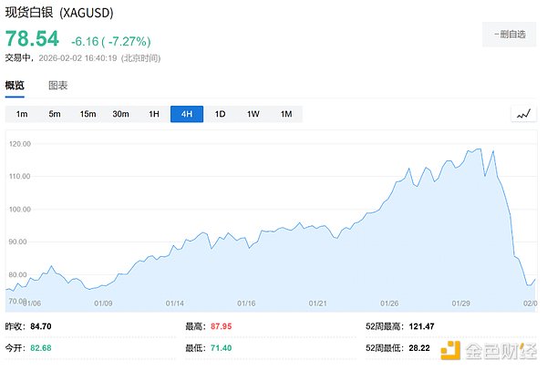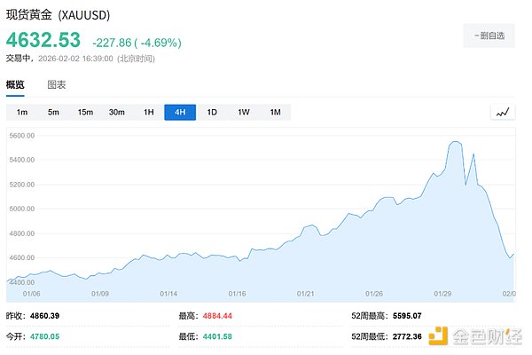 周一的贵金属市场延续周五下跌趋势,现货白银单日暴跌 7%,现货黄金暴跌 4.7%,一度跌破 4500 美元关口。