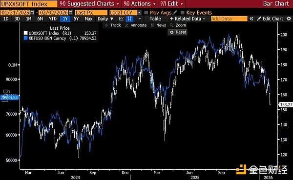 瑞银(UBS)SaaS 指数 vs BTC