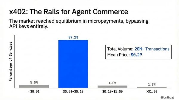 目前 89.2% 的服务定价位于 $0.01–$0.10 区间——这是稳定币结算成本远低于信用卡交换手续费的“甜点区间”。