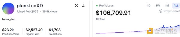 预测市场中,大多数人都在博弈「黑天鹅」或追逐大新闻,但 planktonXD 走的是一条完全不同的路:极致的确定性与恐怖的执行频率。