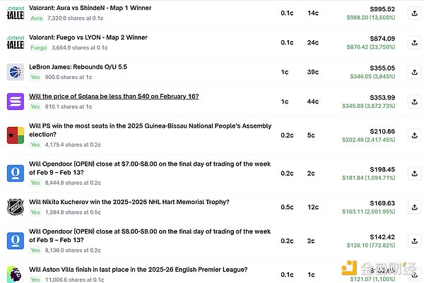 它以 0.7¢(市场认为胜率不到 1%)的价格投入约 16 美元,最终带走 1574 美元,回报率达到惊人的 9,285%。