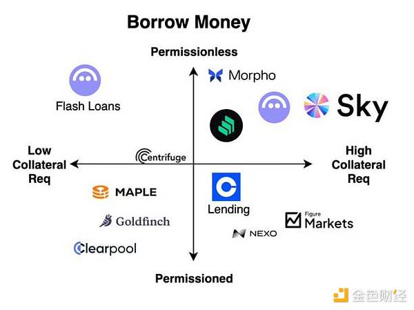 今天加密借贷的主流,还是无需许可、链上超额抵押。Aave、Morpho、Sky(原 MakerDAO)这些 DeFi 巨头,信仰「代码即法律」。区块链拿不到你的 FICO 分,也没有过往信用记录可查,那就用超额抵押来保证偿付能力[22]——牺牲资金效率,换的是无门槛准入和抗违约安全垫。Morpho 代表了这类模型的新一代演进[23]:模块化、无需许可、风险定价更精细,资金效率更高。
