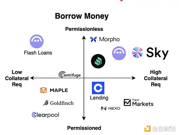 当前加密领域的主流模式,是无需许可、链上运行、要求超额抵押的借贷系统。像 Aave、Morpho 以及 Sky(前身为 MakerDAO)这样的 DeFi 巨头,体现了加密「代码即法律」的核心精神:由于区块链天然无法获取用户的 FICO 信用评分或社会信誉信息,它们只能通过超额抵押来确保偿付能力,以牺牲资本效率为代价,换取更广泛的可访问性与对违约风险的安全防护。