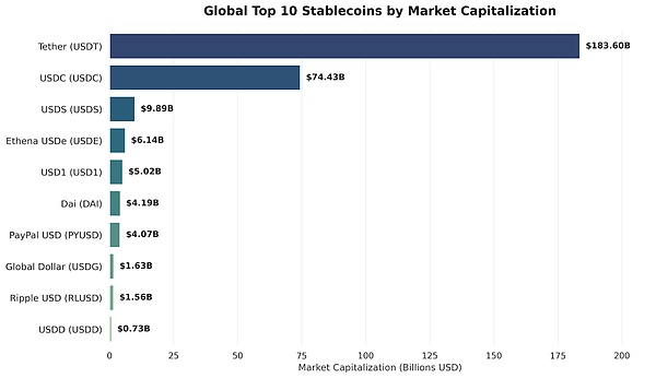 客观来说,PYUSD做得并不差。自2023年发布以来市场规模达到40亿美元,稳居全球稳定币市值前十。但比起Tether约1800亿美元的USDT和Circle约700亿美元的USDC,PYUSD的体量只能称得上零头。