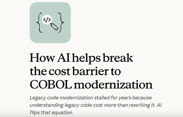 原因是啥?仅仅因为Anthropic发了一篇新的博客文章,介绍旗下的Claude Code工具可用于对运行COBOL语言的老旧系统进行现代化改造。而COBOL相关业务正是IBM的核心业务之一。