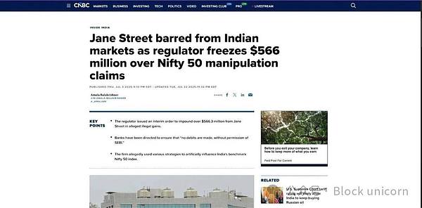 Jane Street 随后被禁止进入印度证券市场。他们将超过 5.6 亿美元的资金存入第三方托管账户,并立即提起上诉。截至目前,该案仍在印度证券上诉法庭审理中。