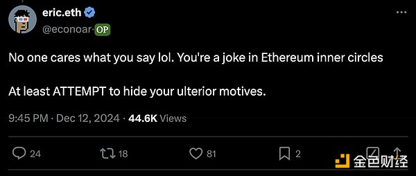 这些在 EF 拿「花生米」薪水的人(相比 FAANG 公司和 AI 实验室),仅仅因为赚了钱并帮助一个想要让以太坊变得更好的协议(即使它不是以太坊本身),就遭到了攻击。