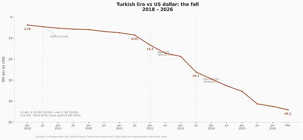 土耳其的里拉也在走类似的路,通胀长期超过 30%,币安上 USDT/里拉的年交易额超过 220 亿美元,比任何一个比特币交易对都大。2024 至 2025 年间土耳其接收了近 2000 亿美元加密资产,超过一半成年人持有加密资产,不相信本币,就只能相信链上美元,哪怕很多人也并不喜欢美国。这件事在德黑兰和伊斯坦布尔每天都在发生。
