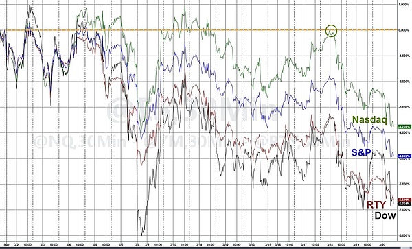 在上述消息驱动下,纳斯达克指数日内跌幅扩大至2%,领跌三大指数。自美伊冲突爆发以来,道琼斯指数与小盘股指数累计跌幅已接近7%。
