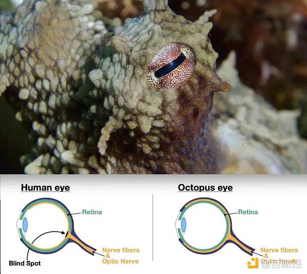 章鱼和人类眼球结构对比|图片来源:OctoNation